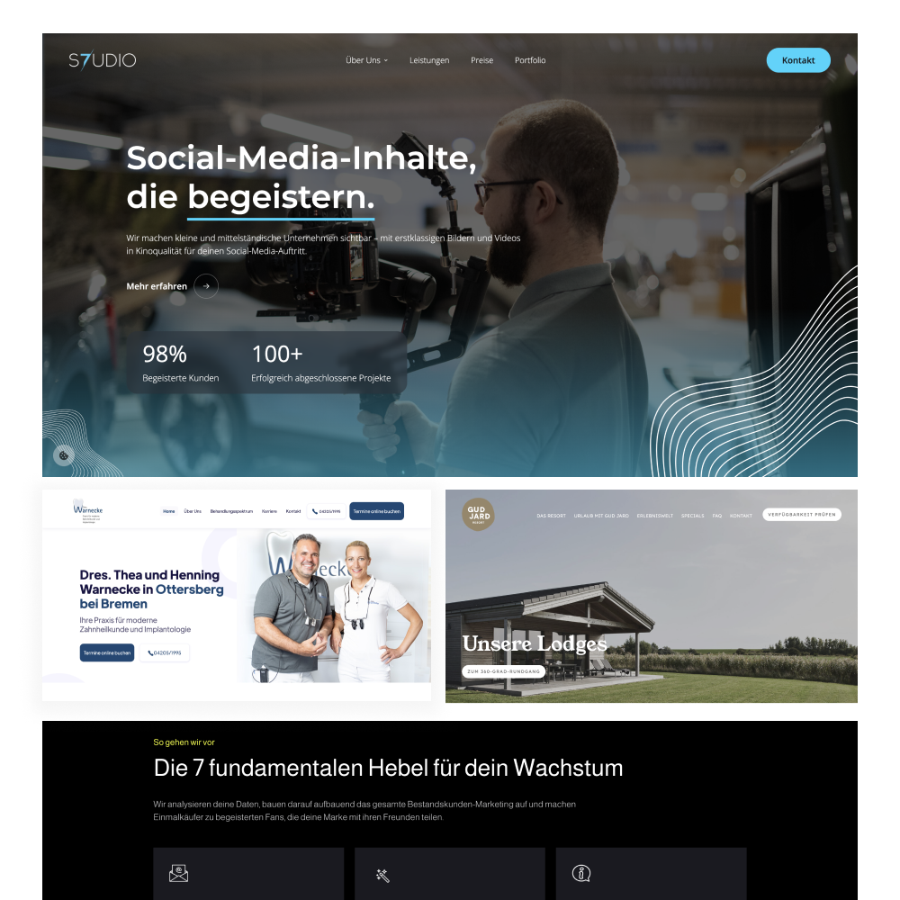 Wir haben schon über 200 Unternehmen zu einer einzigartigen Website verholfen. Eine professionelle Website steigert Ihre Sichtbarkeit bei Google, gewinnt neue Kunden und macht Sie als Arbeitgeber attraktiver.